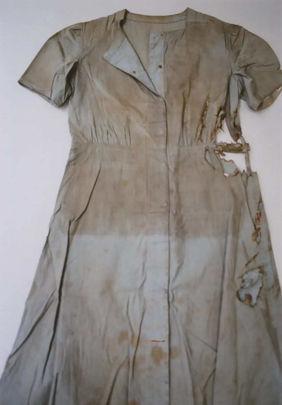 2020年3月初,當(dāng)新冠病毒尚未爆發(fā)大流行時,我曾前往廣島和平紀(jì)念資料館,拍攝了那里最近捐贈的文物。在那里,經(jīng)歷了1945年8月6日那一天的物件最終被放在了一起,它們交織在一起的時間跨度長達(dá)75年。自2007年以來,我便一再去到那里參觀,那里有大約兩萬個無法成為過去的捐贈品。盡管捐贈品的數(shù)量逐年在減少,但是今年又有一條裙子等著我去拍。皺皺巴巴的衣服,沒有人穿它,似乎顯得很孤獨(dú)。我把它拿出來放在光線下,撫平其褶皺,拉直其胸部,好讓空氣穿過裙子上的褶皺。我按下快門時,似乎拍下曾擁有這條裙子的女人的照片。