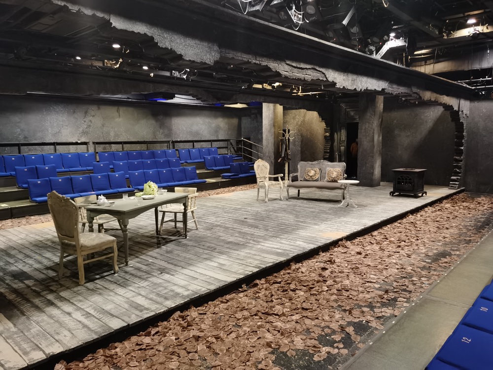 “我們做了一種包裹式的舞臺,是把觀眾和演員包裹在一起,所有的故事都發(fā)生在劇中的客廳里,觀眾也是參與者,更能夠感同身受?!绷謪步榻B說?;野咨{(diào)的家具讓人聯(lián)想起俄國廣袤的白樺林,而富有層次的燈光,俄羅斯風(fēng)格的配樂,則無一不營造出劇中浪漫的異國情調(diào)。在觀眾席的一側(cè),狹長的墻壁被用作屏幕,通過在屏幕上的投影來進行場景提示,讓影像帶領(lǐng)著觀眾一起進入劇中時代,進行一場關(guān)于人生的戲劇旅行。
