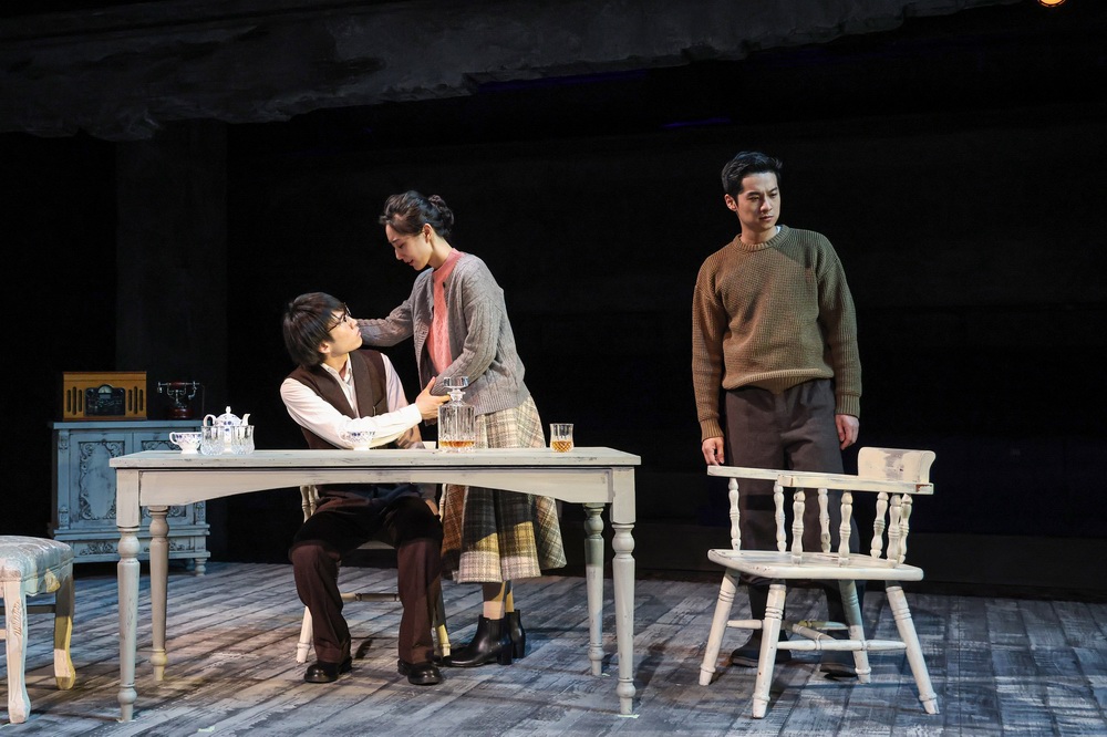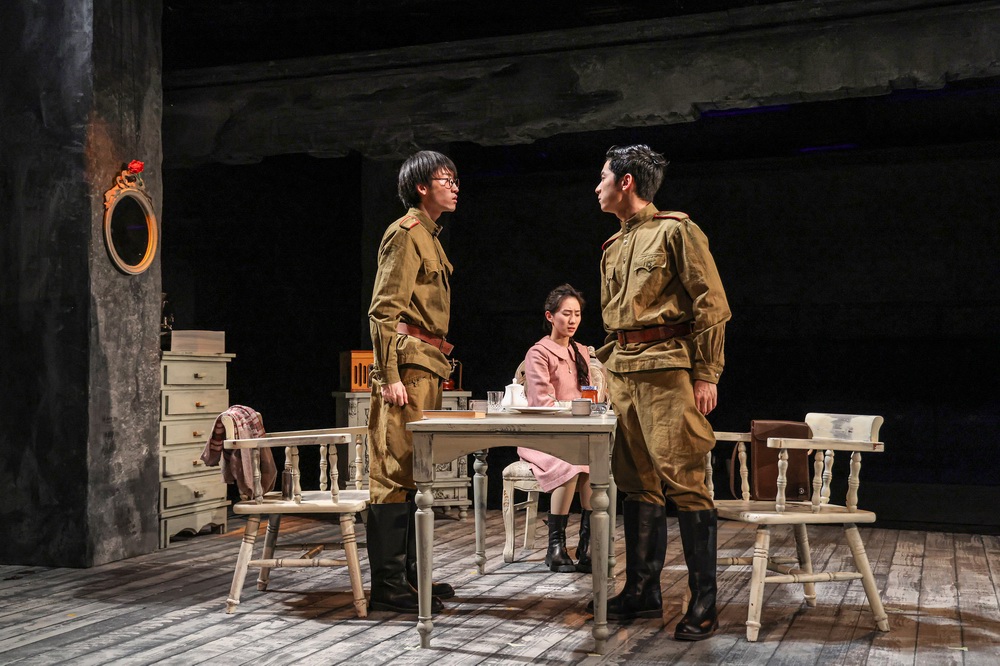 林叢:這一次把舞臺設(shè)計成一間客廳,它本身就這個社會最小的元素。我們在這間客廳中呈現(xiàn)出人物一點點的改變,放大出來,折射出來的是整個時代、社會的變遷。這間客廳其實是個精神家園,戰(zhàn)亂時是他們仨的桃花源,戰(zhàn)后他們在里面生活,并且要對自己的選擇負責(zé)。