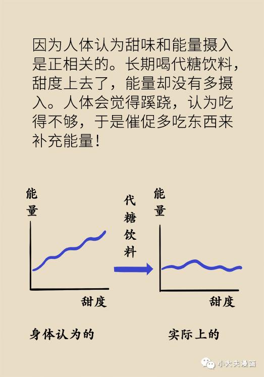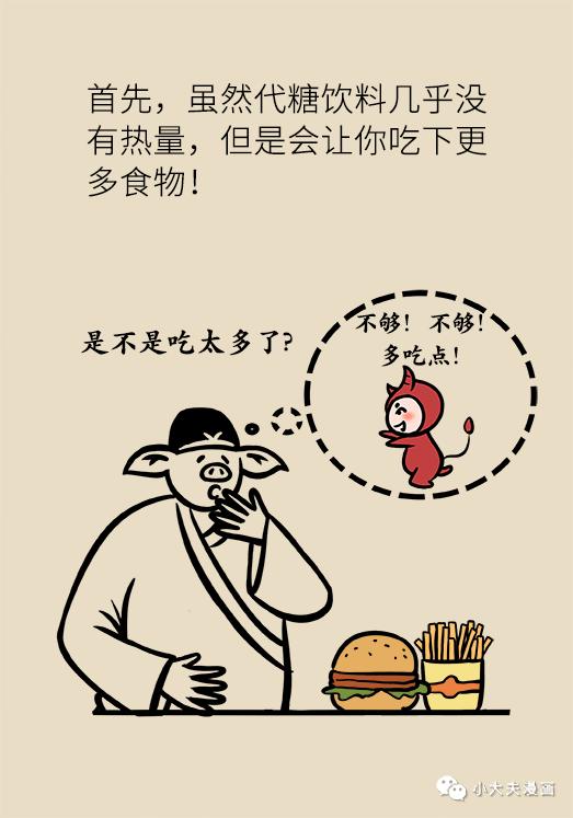 第一,代糖飲料會讓你吃下更多食物!人體認為甜味和能量攝入正相關。喝代糖飲料,甜度上去了,能量卻沒有多攝入。人體會認為吃的不夠,催促多吃東西來補充能量。