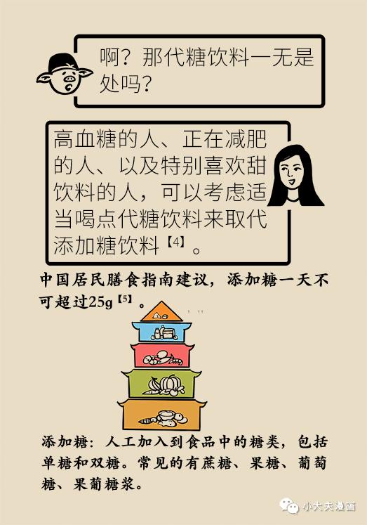 高血糖的人、正在減肥的人、以及特別喜歡甜飲料的人,可以考慮適當喝點代糖飲料來取代添加糖飲料。喝代糖飲料推薦喝赤蘚糖醇、甜菊糖和木糖醇的代糖飲料。