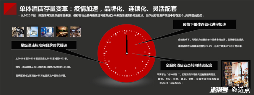 邁點(diǎn)研究院《2021年中高端酒店競(jìng)爭(zhēng)力指數(shù)發(fā)展報(bào)告》指出,經(jīng)歷疫情巨變,除了傳統(tǒng)的商旅客圈之外,新型細(xì)分客群涌現(xiàn),也誕生了新的消費(fèi)業(yè)態(tài),如staycation(宅度假)、blesuire(商旅休閑)、wellness(健康幸福);同時(shí)消費(fèi)特點(diǎn)嬗變,疫后內(nèi)需藍(lán)海仍需深度挖掘,以安全健康私密為例,它正引領(lǐng)行業(yè)朝著wellness、綠色環(huán)保等方向發(fā)展。這也為酒店業(yè)品牌連鎖化和主題化發(fā)展提供了方向,以wellness為代表的健康生活方式品牌或成未來三年酒店投資熱點(diǎn)。