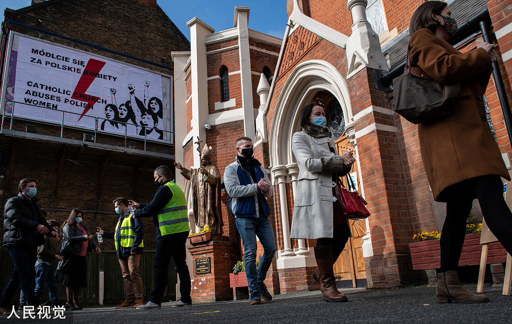當(dāng)?shù)貢r(shí)間2021年4月4日,英國(guó)倫敦,在英國(guó)倫敦巴勒姆地區(qū)的基督國(guó)王教堂,基督徒佩戴口罩保持社交距離參加禮拜集會(huì)。人民視覺(jué) 資料圖