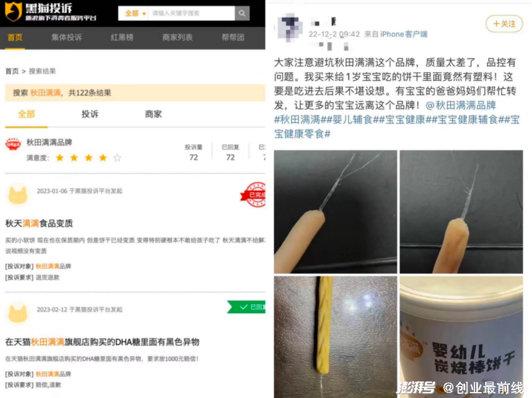在黑貓投訴上,關(guān)于秋田滿滿的投訴量達(dá)72條,且主訴問(wèn)題多為產(chǎn)品存在異物、變質(zhì)等產(chǎn)品質(zhì)量問(wèn)題,目前秋田滿滿方面已回復(fù)處理。