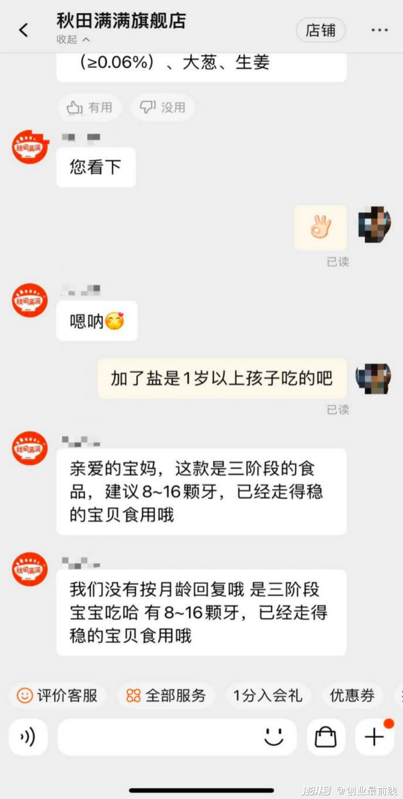 但在咨詢秋田滿滿的客服后,「摩登消費(fèi)」發(fā)現(xiàn),秋田滿滿部分產(chǎn)品對(duì)可食用的年齡段并無(wú)明顯標(biāo)注,客服也并不會(huì)給出準(zhǔn)確意見(jiàn),而是含糊其辭,給銷(xiāo)售留下解釋空間。