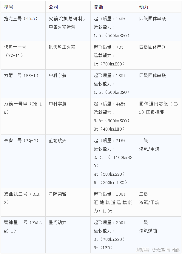 目前,已經有一批企業(yè)展現(xiàn)出了這樣的雄心,先后涌現(xiàn)了中國火箭的捷龍三號中型固體運載火箭,航天科工火箭的快舟十一號中型固體運載火箭,中科宇航的力箭一號中型固體運載火箭和力箭一號甲中大型固體運載火箭,藍箭航天的朱雀二號液氧甲烷中型運載火箭,星際榮耀的雙曲線二號液氧甲烷中型運載火箭,以及星河動力的智神星一號液氧煤油中大型運載火箭。