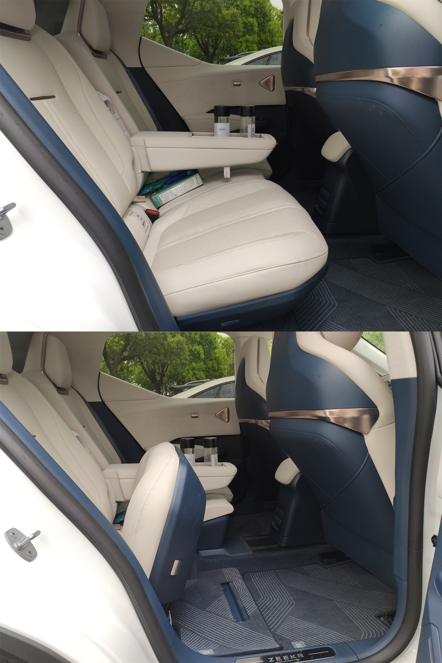 例如最大功率50W的無線充電、支持手柄接入的60W有線充電口、主駕門框上有翻毛皮內襯的眼鏡袋、支持22向電動調節(jié)的副駕零重力座椅等。甚至它還能夠選配一個制冷溫度低至-15℃的車載冰箱,就放在前排扶手后方的儲物箱中,比起那些只能冰鎮(zhèn)飲料的冰箱,你完全可以在極氪X上冷凍冰淇淋。