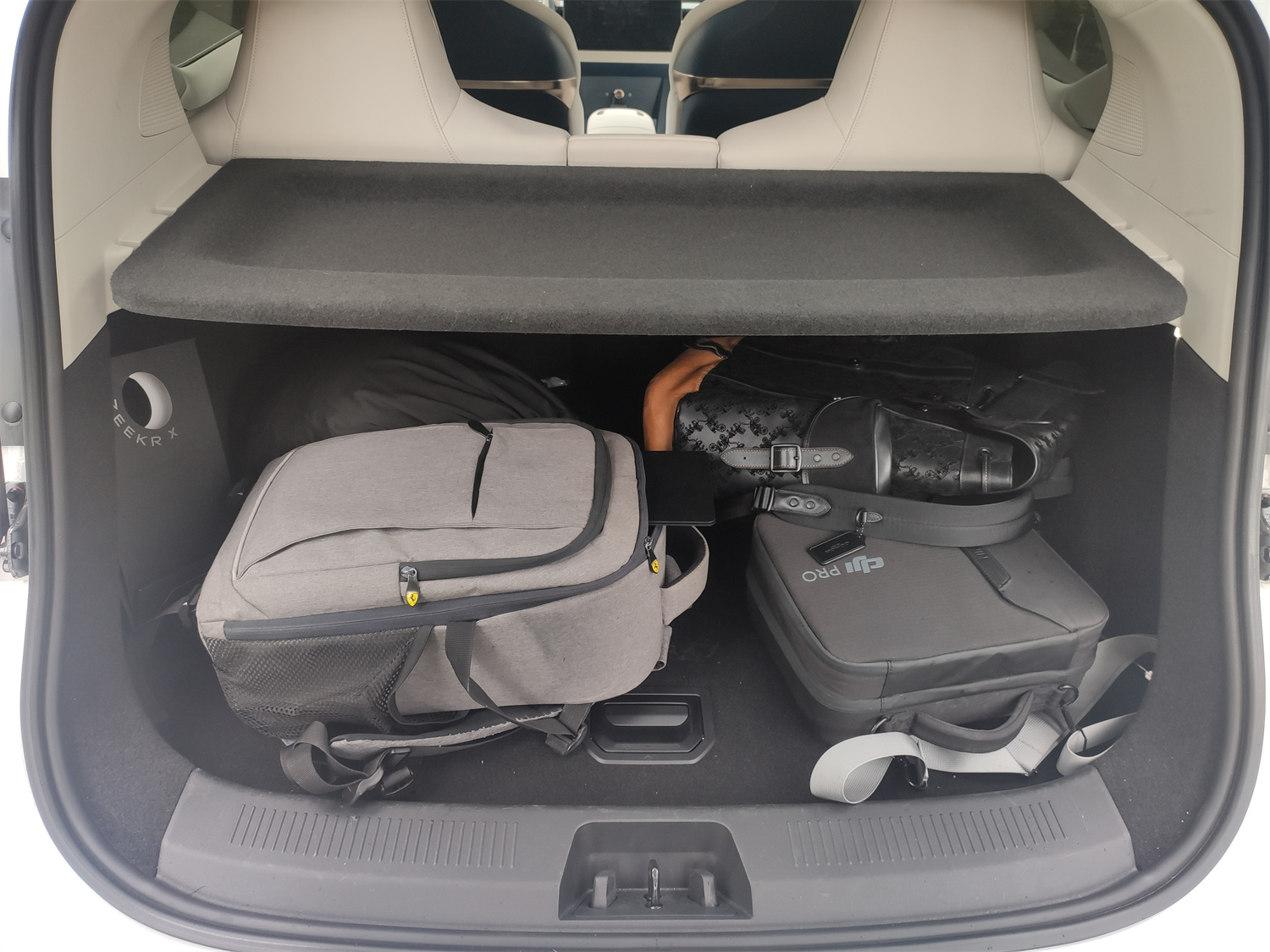 至于置物空間表現(xiàn),極氪X在這方面表現(xiàn)得只能說是中規(guī)中矩。雖然絕對空間不大,但勝在空間搭配比較靈活(例如前后備廂都有),應付大多數(shù)日常出行的置物需求基本足夠。