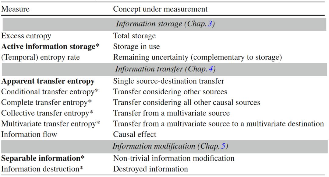 這篇論文通過(guò)復(fù)雜、多樣化和動(dòng)態(tài)的領(lǐng)域進(jìn)行引導(dǎo),這些領(lǐng)域具有錯(cuò)綜復(fù)雜的信息處理結(jié)構(gòu),包括元胞自動(dòng)機(jī)、隨機(jī)布爾網(wǎng)絡(luò)、大腦皮層網(wǎng)絡(luò)、睡眠呼吸暫停中的心率與呼吸頻率的相互作用、模塊化機(jī)器人系統(tǒng)、電力網(wǎng)絡(luò)中的級(jí)聯(lián)故障等。它揭示了這些系統(tǒng)通過(guò)其信息存儲(chǔ)(“主動(dòng)信息存儲(chǔ)”)、通信(“信息轉(zhuǎn)移”)和處理(“信息修正”)的連貫性使用,來(lái)發(fā)揮其內(nèi)在的功能。