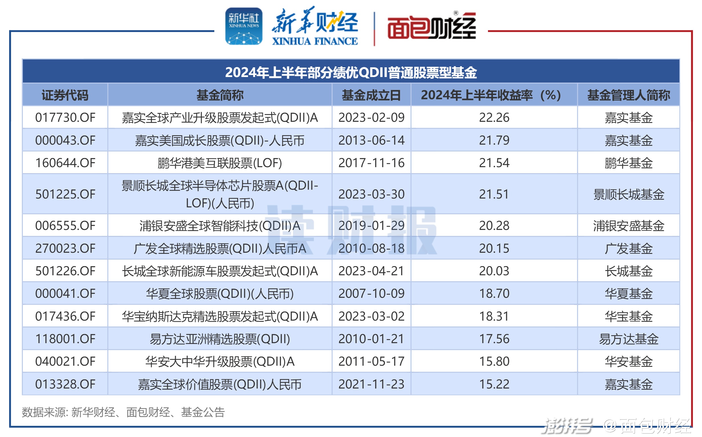 2024年上半年(截至6月30日),QDII普通股票型基金算術平均收益率為10.41%,中位數(shù)收益率為11.27%,業(yè)績表現(xiàn)較為突出。