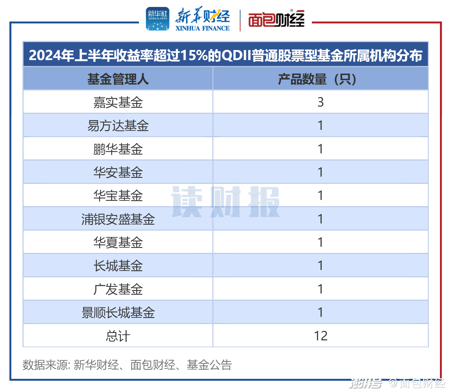 按照機構劃分,上述12只基金來自于10家機構,其中嘉實基金旗下產品有3只,其他9家機構都只有1只。