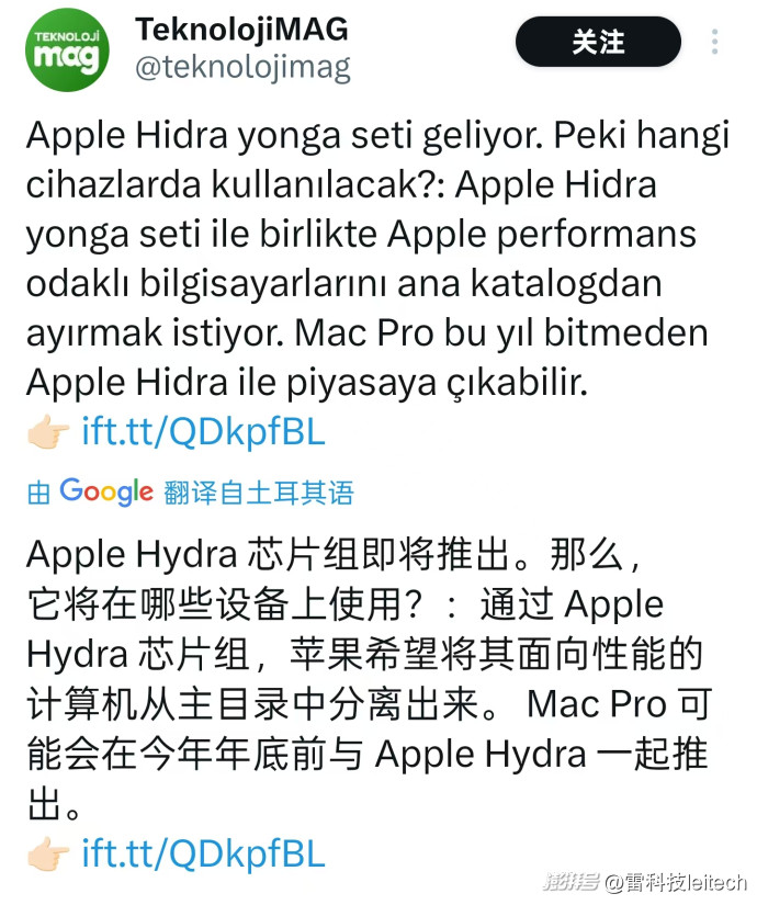X平臺用戶@teknolojimag補(bǔ)充道,蘋果可能還希望將“Hidra”計(jì)算平臺從M系列當(dāng)中剝離出來,作為一個(gè)獨(dú)立的更高性能的產(chǎn)品存在。