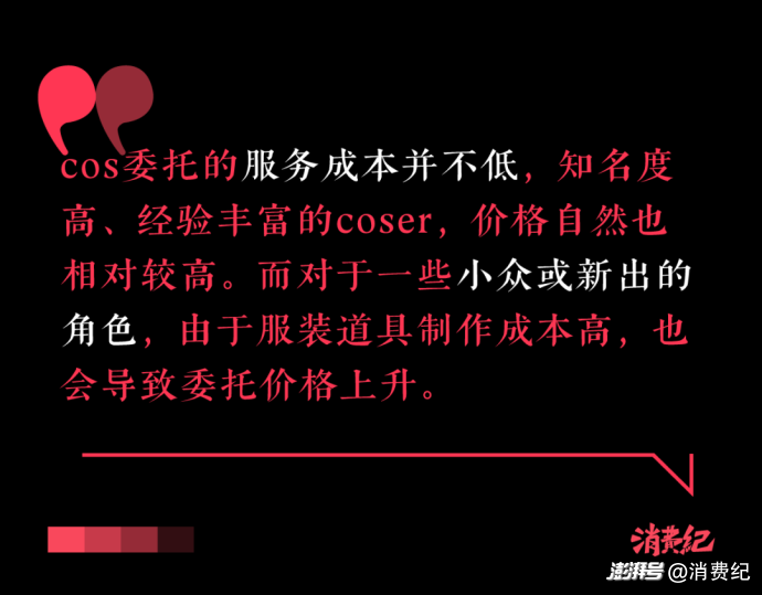 倘若單主指定coser扮演此前從未出過的角色,那成本更是直線上升。從設計定制的角色服裝,到打造契合角色的妝發(fā)造型,每一個環(huán)節(jié)的費用都需要單主獨自承擔,這無疑大幅增加了cos委托的消費成本。