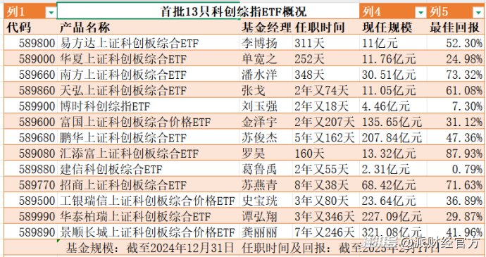 2、首批13只科創(chuàng)綜指ETF集中發(fā)行,基金新銳擔綱8人任職時間低于3年