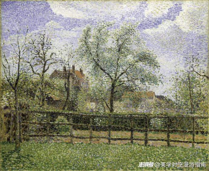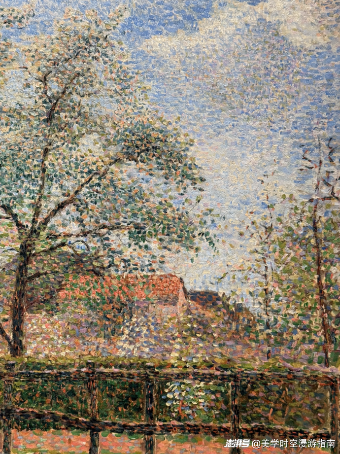 而這一幅《埃拉尼晨曦下盛開的梨樹》,是晚年的畢沙羅還在努力學(xué)習(xí)新技法的證明。這是一幅點彩派的作品。