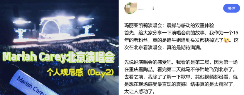 去年9月的北京演唱會,吸引了不少外地觀眾前往北京享受這“震撼與感動的雙重體驗”。許多現(xiàn)場觀眾表示,瑪麗亞?凱莉的演出讓他們圓夢,她的舞臺掌控力依舊強大,現(xiàn)場演唱實力驚人,尤其是在《#beautiful》等歌曲中的海豚音,更是引發(fā)了全場歡呼。根據(jù)過往經(jīng)驗,在官宣后預(yù)售也將隨之而來,想一睹傳奇風(fēng)采的廣大歌迷們可以密切關(guān)注各大票務(wù)平臺的預(yù)售信息,以便及時參與這輪“拼手速”。