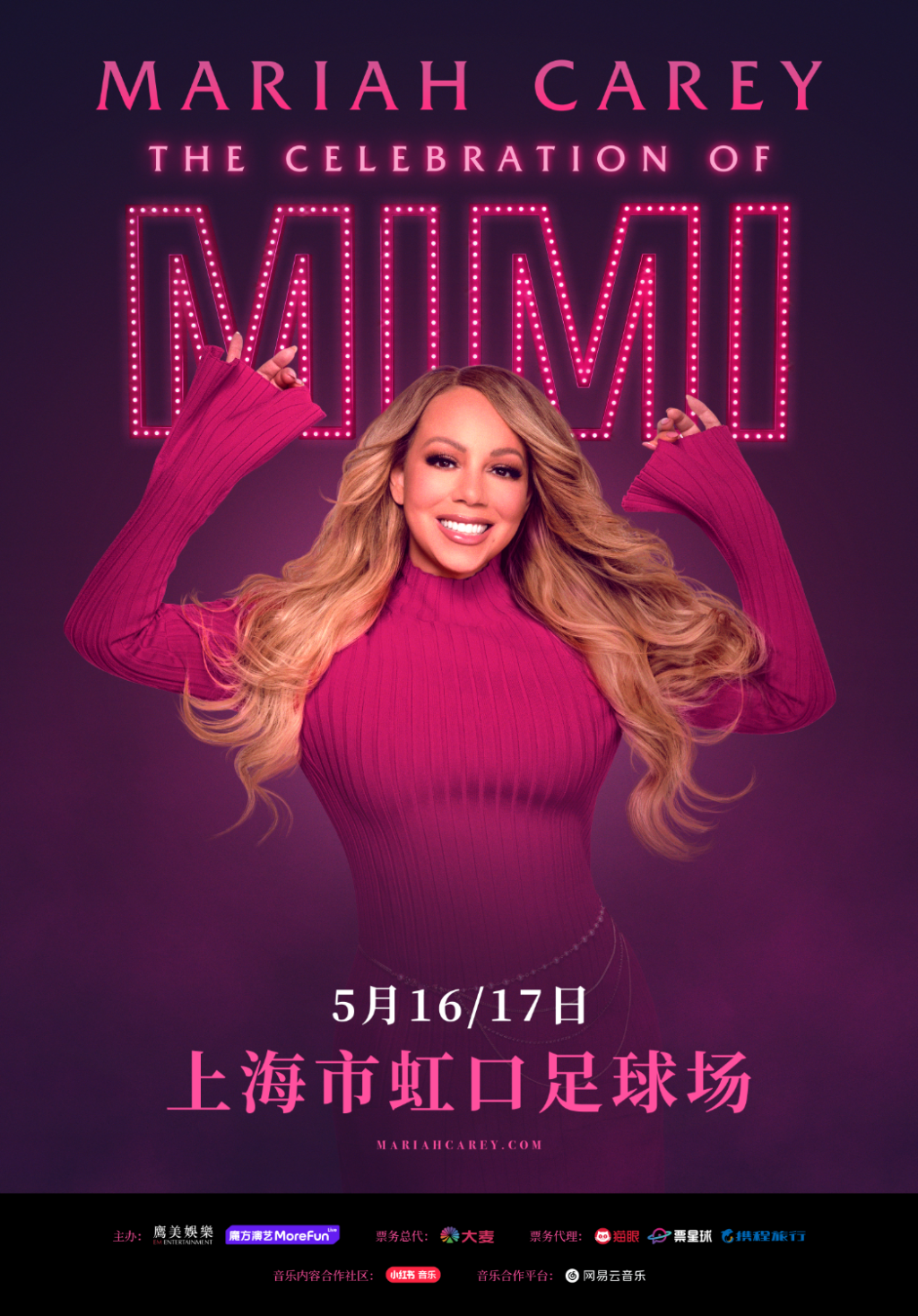 3月24日,國際流行音樂天后瑪麗亞·凱莉(Mariah Carey)通過個人微博官方賬號宣布,其巡演《The Celebration of MIMI》將首次登陸中國內(nèi)地,于5月16日、17日在上海虹口足球場舉行兩場重磅演出。