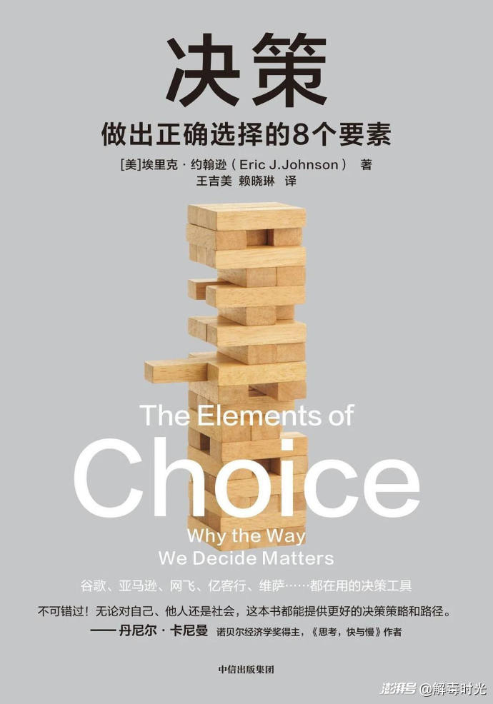 在《決策,做出正確選擇的8個(gè)要素》(書名可能為了好賣,實(shí)際上英文是The Elements of Choice, Why the Way We Decide Matters)這本書中,作者就提出了一個(gè)很重要的觀點(diǎn),“在你做出選擇之前,已經(jīng)有人塑造出了各個(gè)選項(xiàng)的不同特點(diǎn),而這將在一定程度上對你的選擇產(chǎn)生影響”。并介紹了決策要素如何影響決策過程。