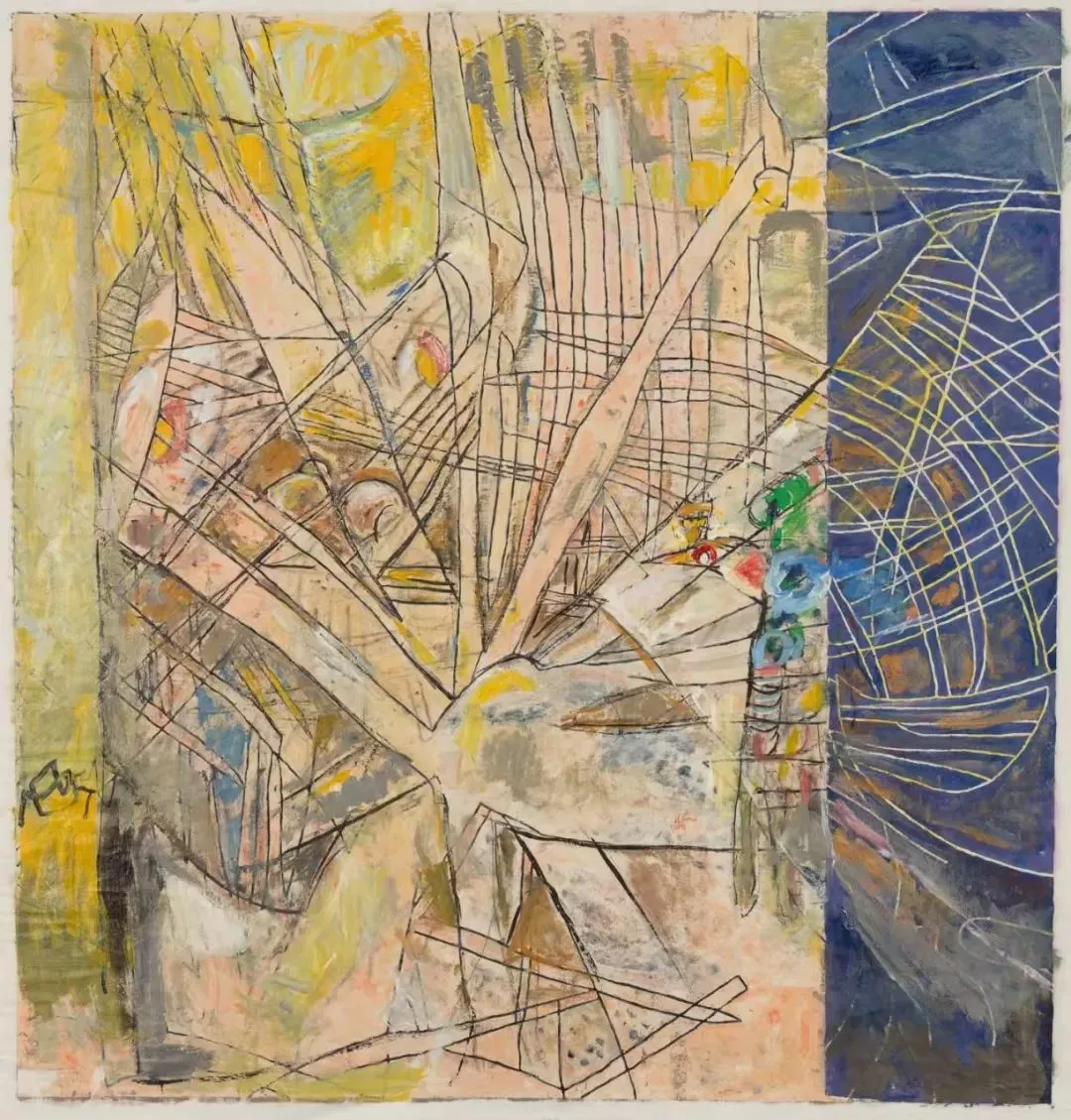 石虎的《玄雀圖》是一件極具東方精神與現(xiàn)代性交融的重彩作品,融合了東方文化基因與現(xiàn)代抽象語(yǔ)言。其藝術(shù)語(yǔ)言既植根于中國(guó)傳統(tǒng)文化,又突破傳統(tǒng)繪畫的程式化束縛,展現(xiàn)出石虎獨(dú)特的“神覺”思維與“字象”美學(xué),呈現(xiàn)出獨(dú)特的視覺張力和哲學(xué)意蘊(yùn)。