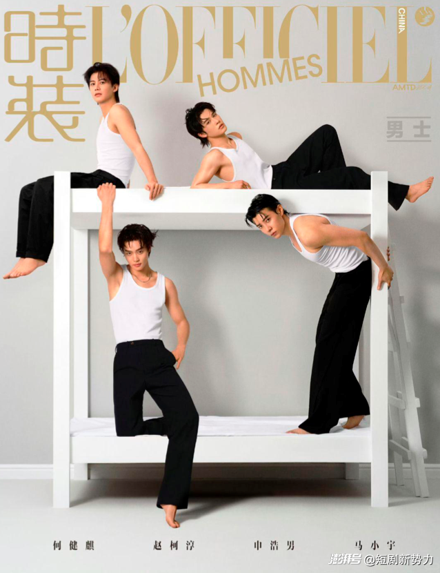2025 年 2 月,四位演員共同登上《時(shí)裝男士 L'OFFICIEL HOMMES》特別專(zhuān)刊封面,這是短劇演員首次獲得頂級(jí)時(shí)尚雜志的集體邀約。封面中,柯淳的 "純愛(ài)霸總" 氣質(zhì)、申浩男的冷峻疏離感、馬小宇的健碩挺拔身形、何健麒的痞帥硬氣形象形成鮮明視覺(jué)沖擊,引發(fā)全網(wǎng)熱議。該雜志官方微博發(fā)布的封面預(yù)告博文,24 小時(shí)內(nèi)互動(dòng)量突破 150 萬(wàn)次,# 短劇 F4 時(shí)尚首封 #話題登上微博熱搜 TOP3,閱讀量超 5 億次。