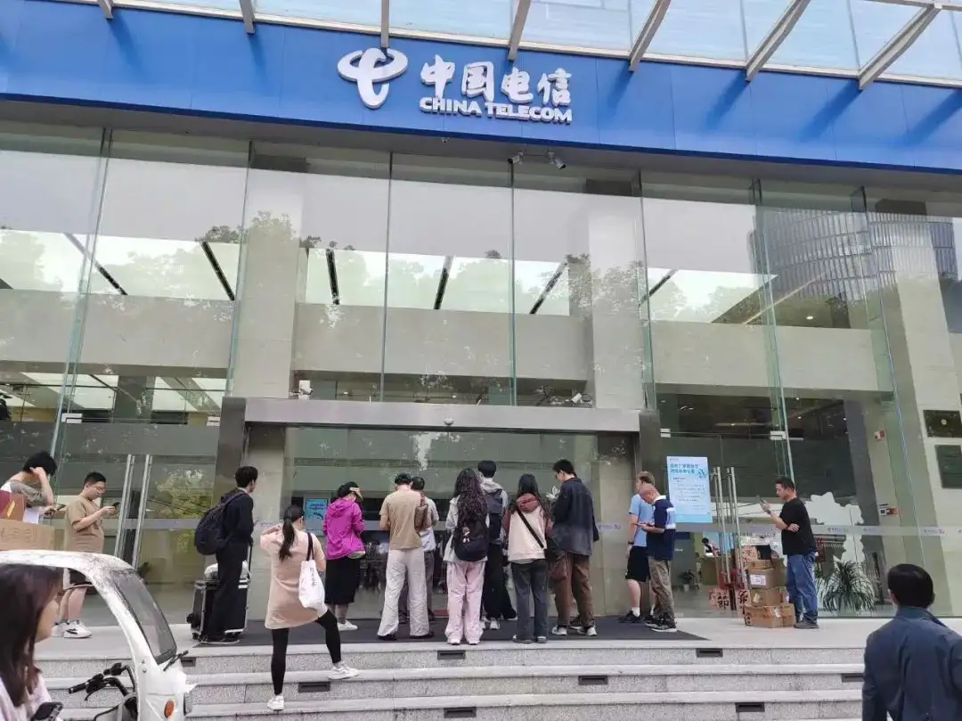 武林廣場電信營業(yè)廳早上8點(diǎn)就有人排隊(duì)等候拍電報(bào)。