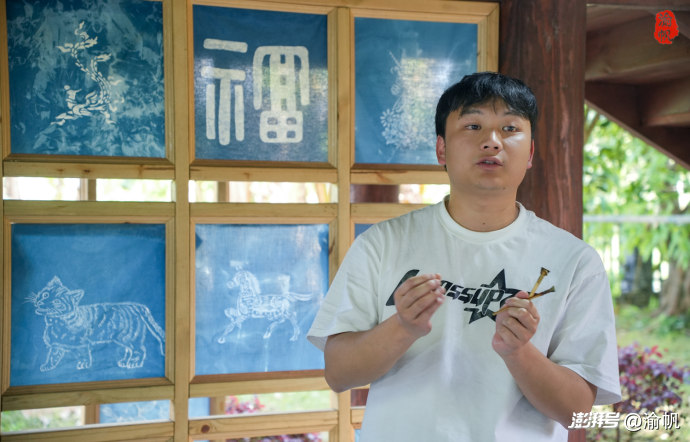 在浸泡過程中,布料的捆扎部分會(huì)因染料無法滲透而形成獨(dú)特的白色圖案,與染色部分相互映襯,構(gòu)成一幅幅精美的藝術(shù)作品。這些圖案往往取材于自然與生活,如花草樹木、山川河流、飛禽走獸、幾何圖案等,寓意著布依族人民對美好生活的向往與祈愿。