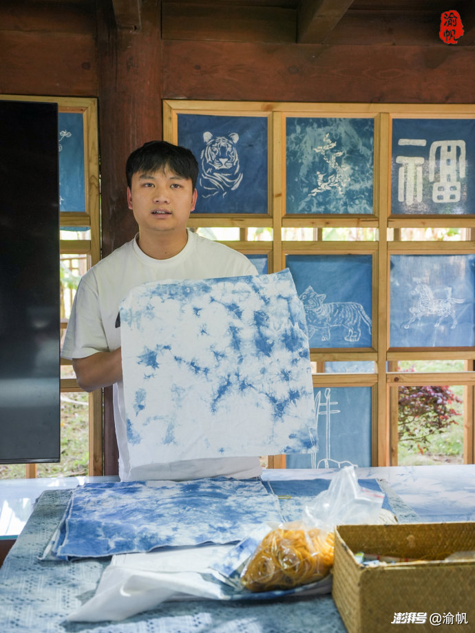 然后,我將其緩緩放入染缸中,輕輕翻動(dòng),讓布料的每一寸都均勻地接受染料的洗禮。幾分鐘之后,當(dāng)將布料從染缸中緩緩取出,那一刻的驚喜難以言表,原本潔白的布料上已然呈現(xiàn)出夢幻般的藍(lán)色圖案。在晾曬過程中,布料的顏色逐漸變得更加深邃而美麗,看著自己的作品在微風(fēng)中輕輕搖曳,心中涌起一股強(qiáng)烈的成就感。