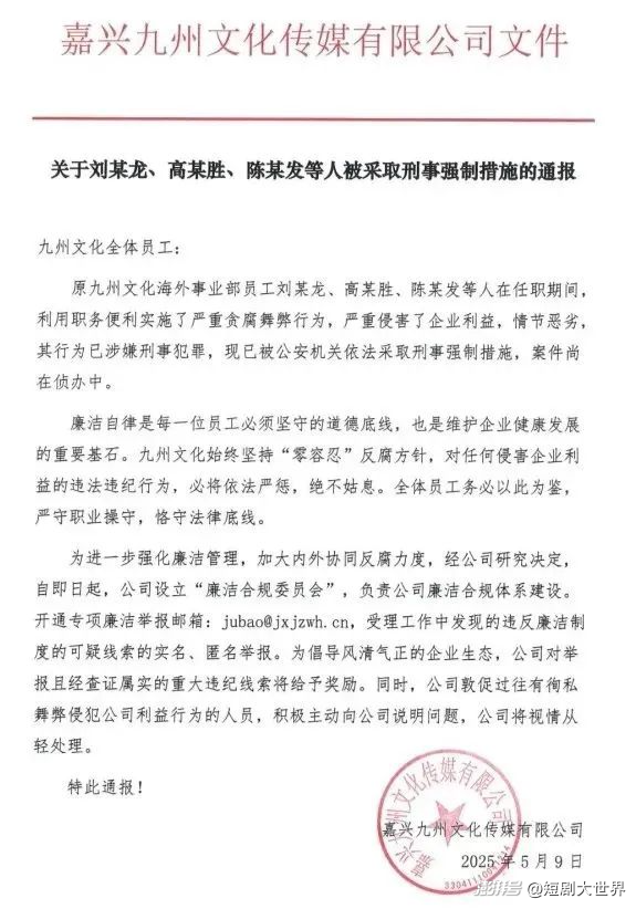 最典型的就是,5月初曝出的九州文化的海外平臺(tái)ShortMax貪腐事件。海外事業(yè)部前CEO劉某龍以及高某勝、陳某發(fā)等多名員工在任期間利用職務(wù)便利大搞貪腐舞弊。