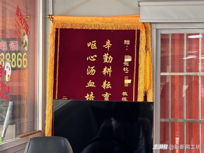 張霞所在駕校的標(biāo)語 記者攝