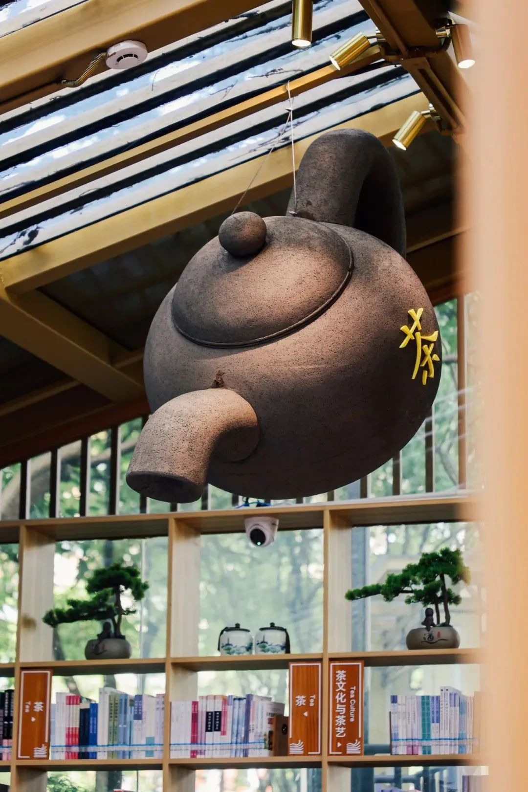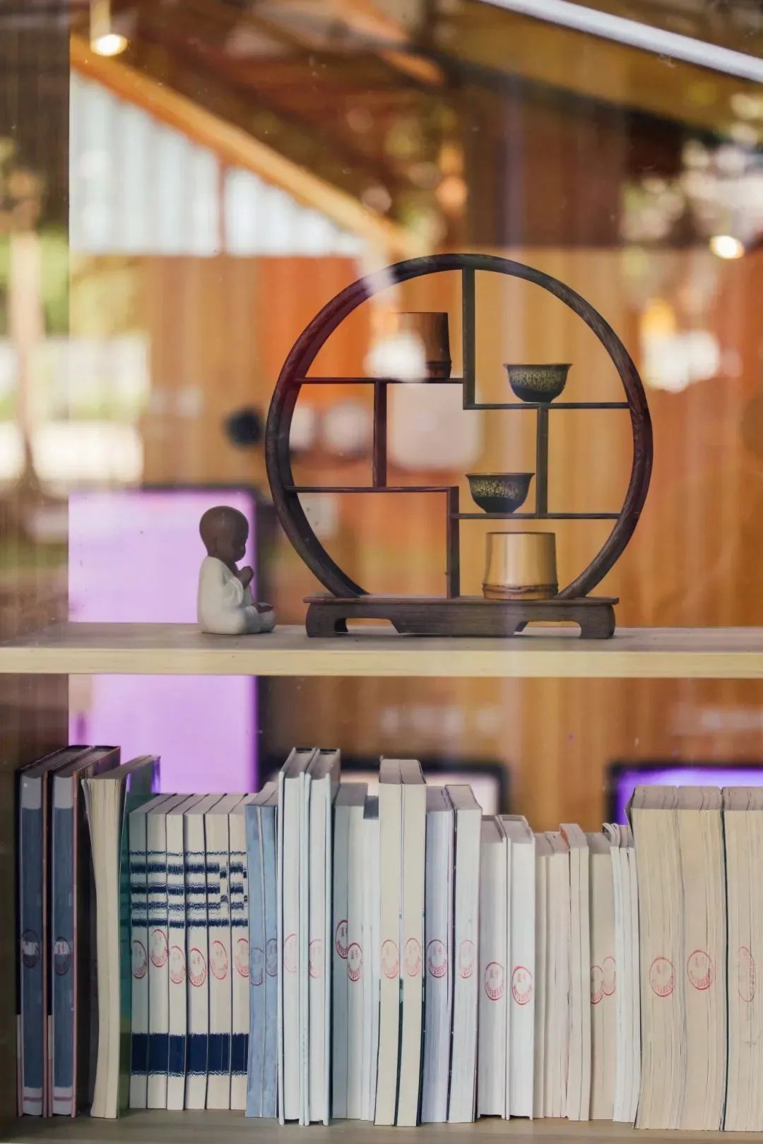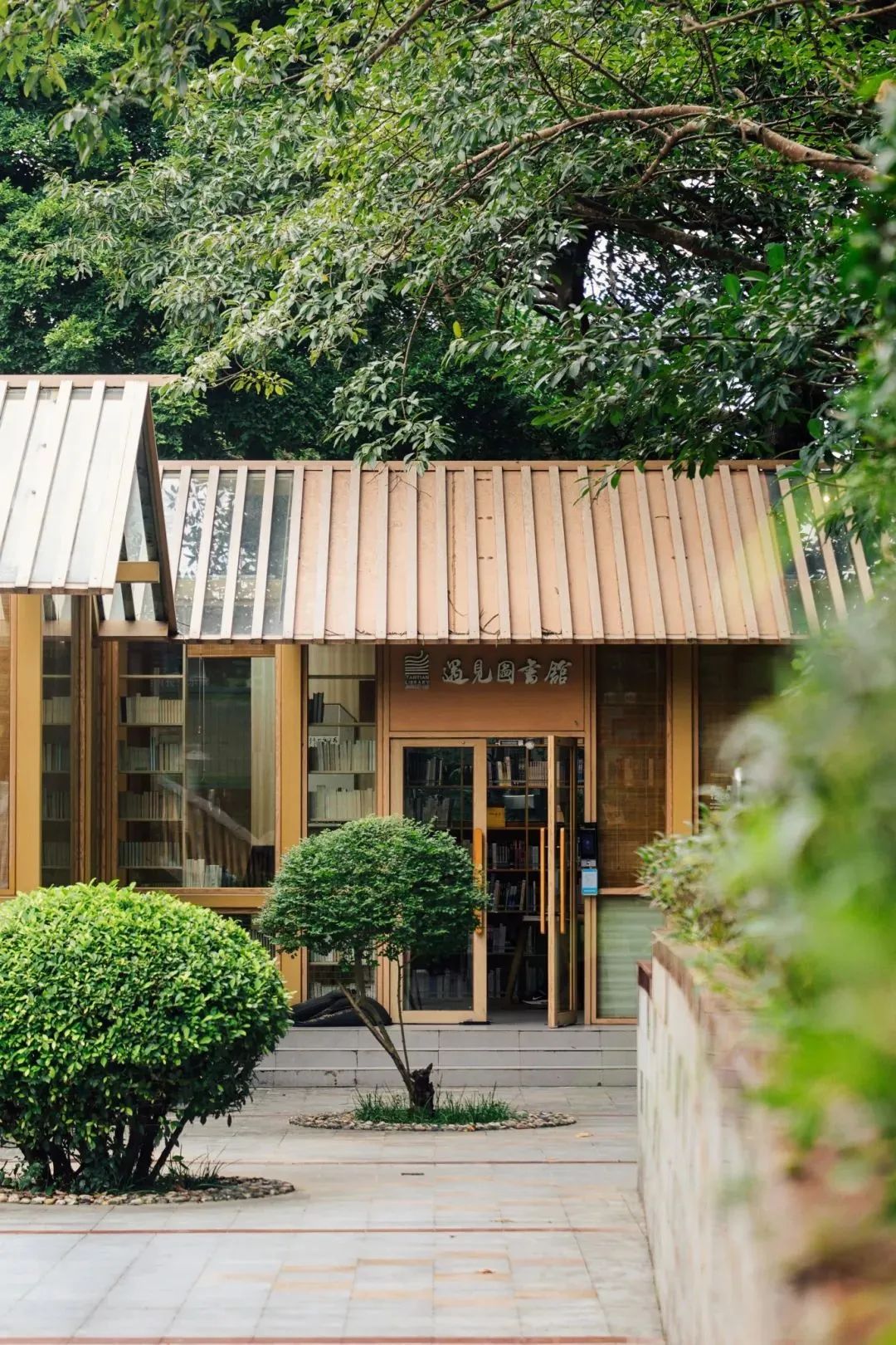 由三間原木小木屋組成的遇見圖書館,以茶文化為主題,玻璃+原木的設(shè)計(jì)清新雅致。館外曲徑通幽,古樸寧靜;館內(nèi)書香四溢,古色古香。