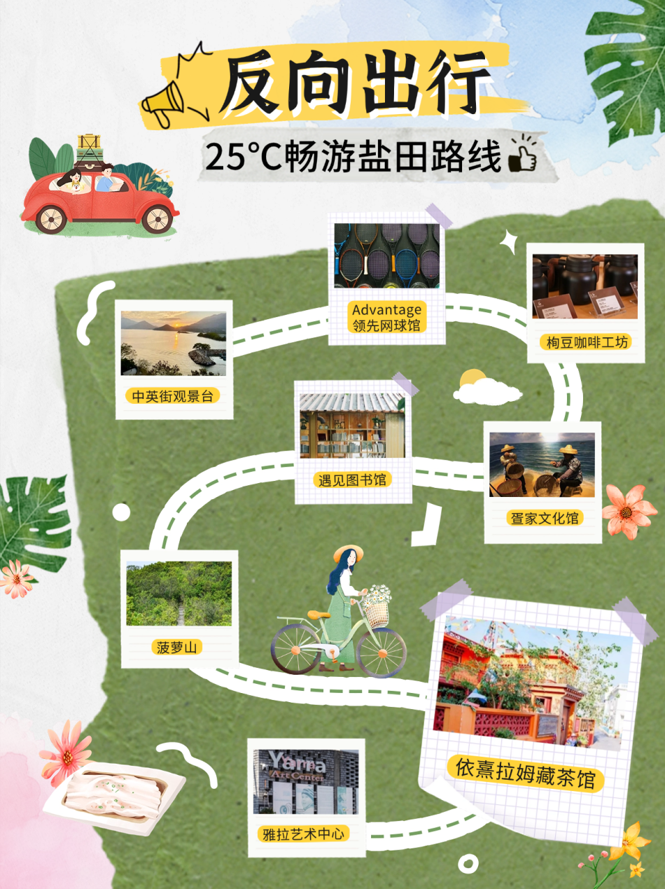 路線推薦:中英街觀景臺(tái)→Advantage領(lǐng)先網(wǎng)球館→栒豆咖啡工坊→疍家文化館→遇見圖書館→菠蘿山→依熹拉姆藏茶館→雅拉藝術(shù)中心