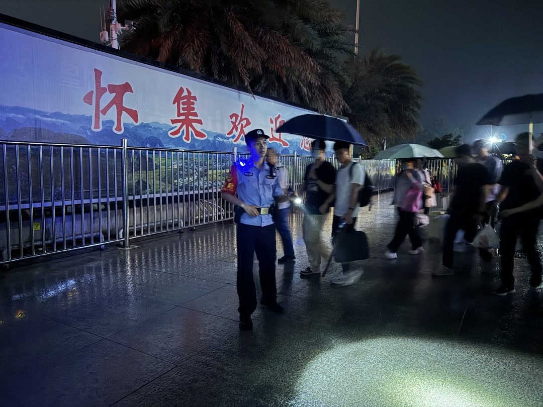 在懷集縣交通陷入癱瘓的緊急時刻,高鐵成為了懷集洪水災(zāi)害中唯一不受影響的交通“生命線”。懷集站派出所迅速啟動應(yīng)急響應(yīng)機(jī)制,全警動員、全員上崗,頂風(fēng)冒雨、堅守崗位,在滂沱大雨中有序疏導(dǎo)客流、維護(hù)站區(qū)秩序,全力守護(hù)這條“救護(hù)”大通道的安全暢通。