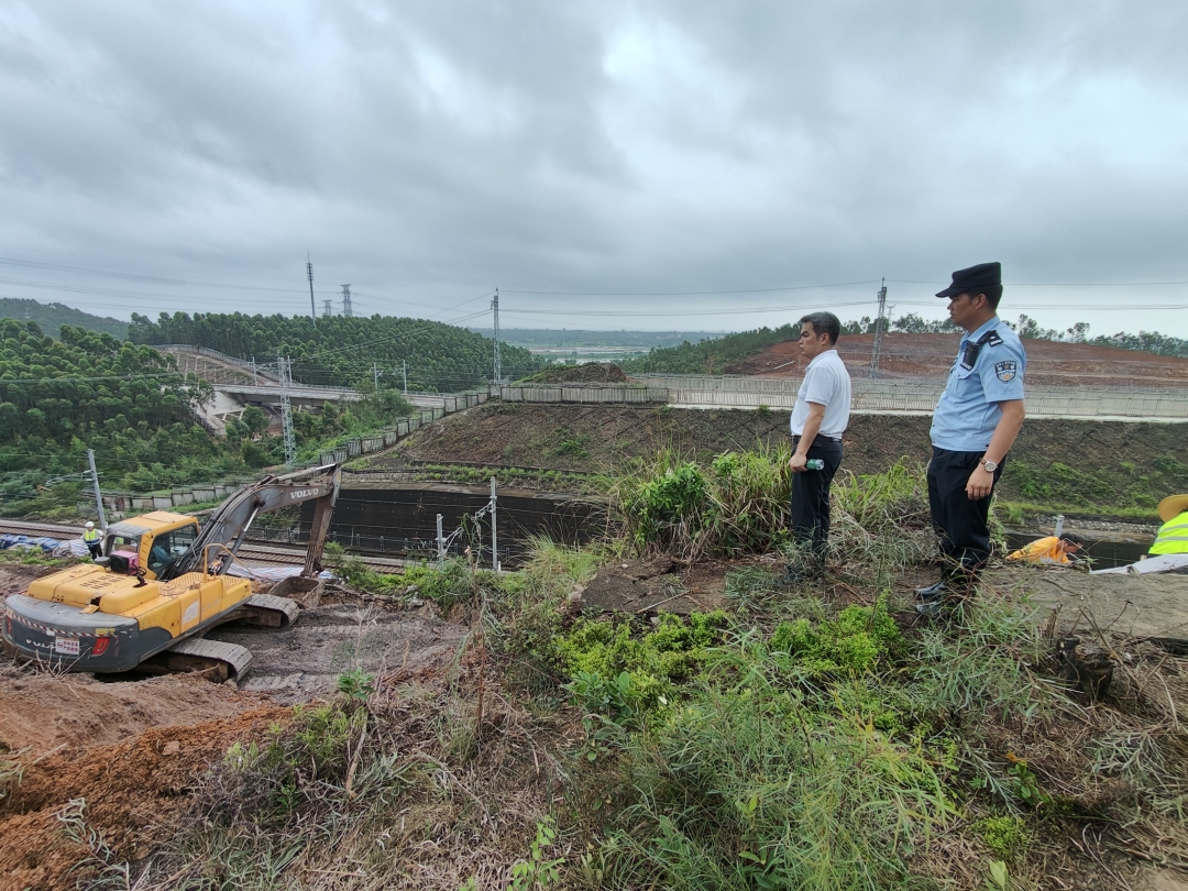 同日,在云浮郁南、陽江陽春、茂名等地鐵路沿線轄內(nèi)均受到降水影響出現(xiàn)山體塌陷、雨水浸泡等情況,為確保安全,各派出所加大警力深入到抗洪一線,在對沿線護(hù)欄、護(hù)網(wǎng)等物防設(shè)施進(jìn)行全面排查,仔細(xì)查找潛在安全隱患的同時,積極協(xié)同應(yīng)急管理人員開展水溝積淤清除工作,為鐵路運(yùn)輸?shù)钠椒€(wěn)運(yùn)行和旅客的生命財產(chǎn)安全提供堅實(shí)保障。
