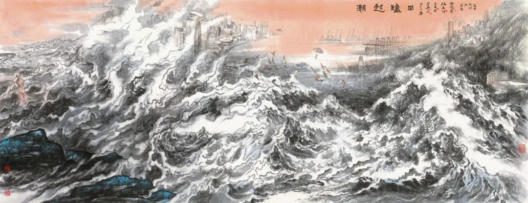 《潮起鹽田》中國畫 503cmX193cm 瞿擁君 丘國威 樊鴻賓 林石川