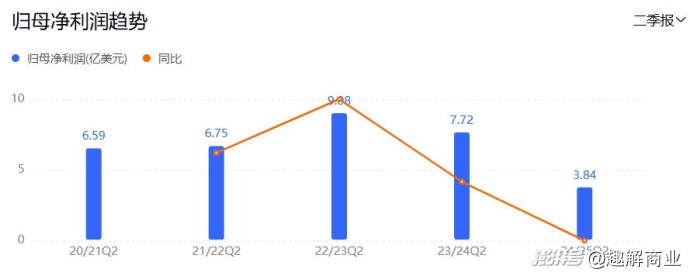據(jù)其2025財年第二季度財報顯示,星巴克全球總營收87.54億美元,同比微增2.31%;歸母凈利潤3.84億美元,較去年7.72億美元驟降50.26%。
