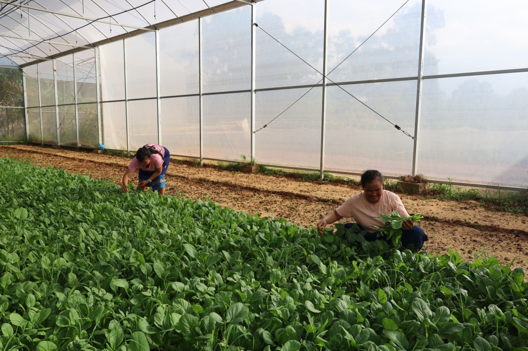 經(jīng)過前期發(fā)展,金花村依托23個(gè)蔬菜大棚不斷壯大蔬菜產(chǎn)業(yè),帶動(dòng)村民增收致富,2024年,廣西援老撾技術(shù)合作減貧示范項(xiàng)目開始在金花村實(shí)施,為金花村發(fā)展注入了新活力。