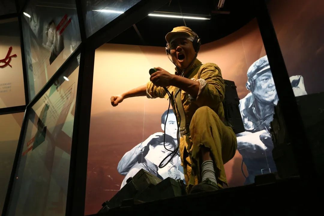 陳列館占地面積2000余平方米,建筑面積近400平方米,院落中央矗立著一座名為《抵抗》的雕像。三名中國(guó)官兵吶喊、沖鋒、指揮的形象,瞬間將走進(jìn)這座院落的參觀者帶回到那段浴血奮戰(zhàn)的歲月。