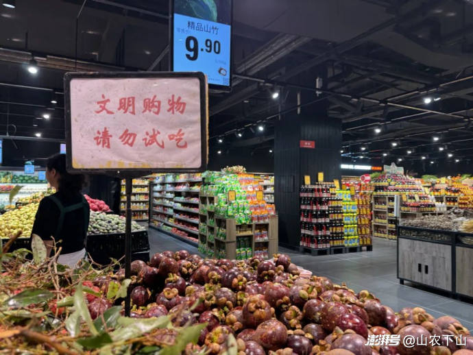 九塊九一斤的山竹、20多一斤的榴蓮……這家“胖東來”調(diào)改超市倒是把縣城的高端水果價(jià)格打了下來。在這之前,縣城人想買高端水果,習(xí)慣去一家叫"綠葉"的連鎖水果店,車?yán)遄映D曩u到七八十一斤,即使不買這種水果,在綠葉消費(fèi),隨隨便便也能花到一百多,讓習(xí)慣拼多多網(wǎng)購水果的媳婦,很是心疼。