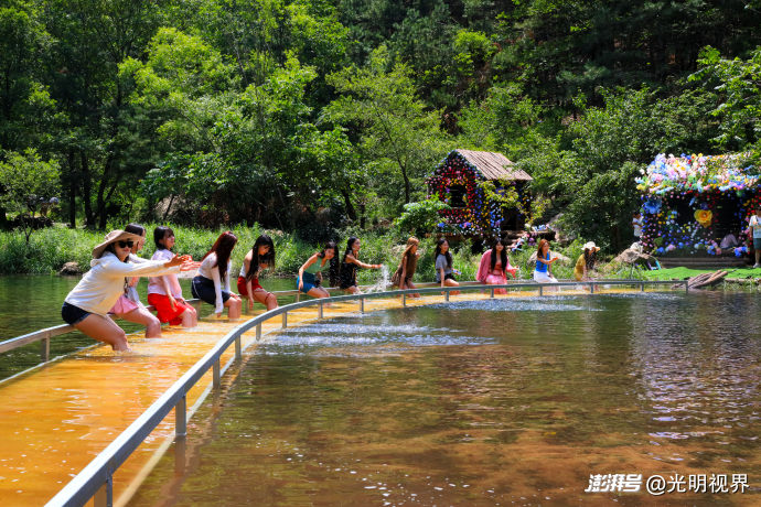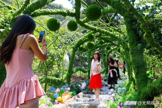 "伏牛水魂,天下奇谷!"每天,景區(qū)主播玉鐲都會(huì)在新建的"花溪水階"前直播。清澈的山泉順著石階流淌,水霧氤氳中,游客們嬉戲玩水,宛如置身仙境。這樣的場(chǎng)景通過(guò)短視頻平臺(tái)傳播,讓景區(qū)迅速走紅。