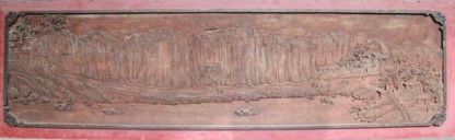 春秋祠木刻畫匾“永寧八景”之一:“流沙懸練”(圖源:敘永縣博物館)