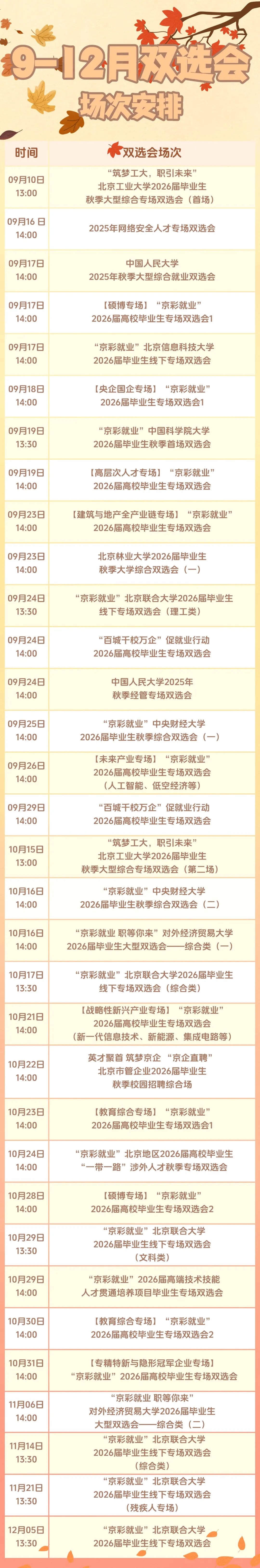 用人單位必存|9-12 月雙選會日歷:從秋招到年終,人才招聘場次全預告