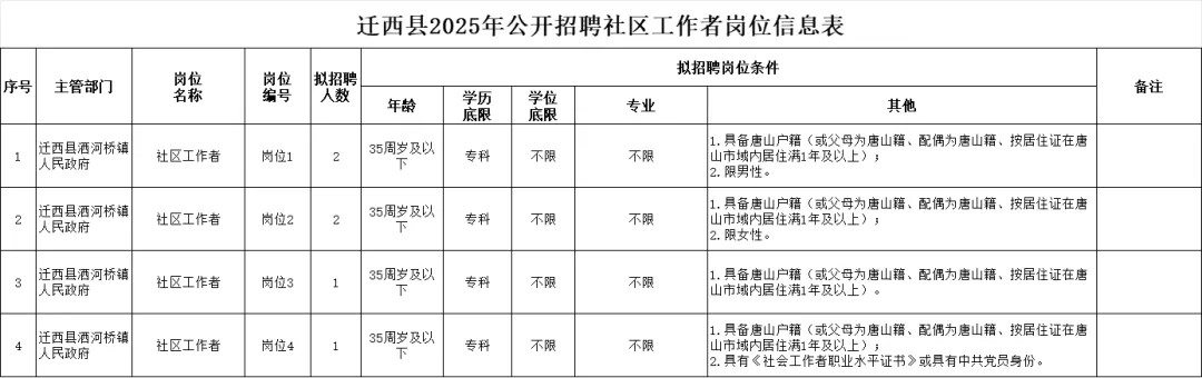 ★遷西縣2025年公開(kāi)招聘社區(qū)工作者公告