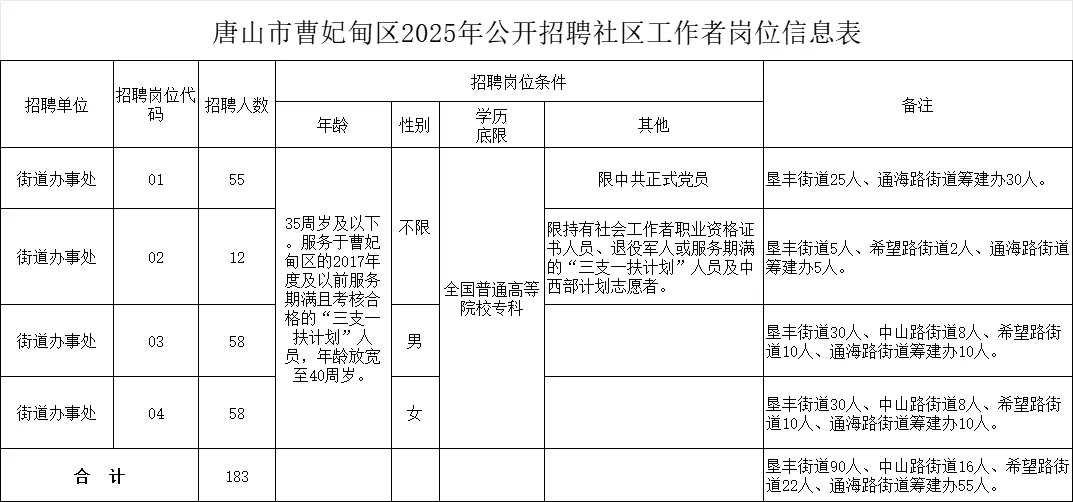 ★唐山市曹妃甸區(qū)人力資源和社會(huì)保障局中共唐山市曹妃甸區(qū)委社會(huì)工作部關(guān)于2025年公開(kāi)招聘社區(qū)工作者的公告