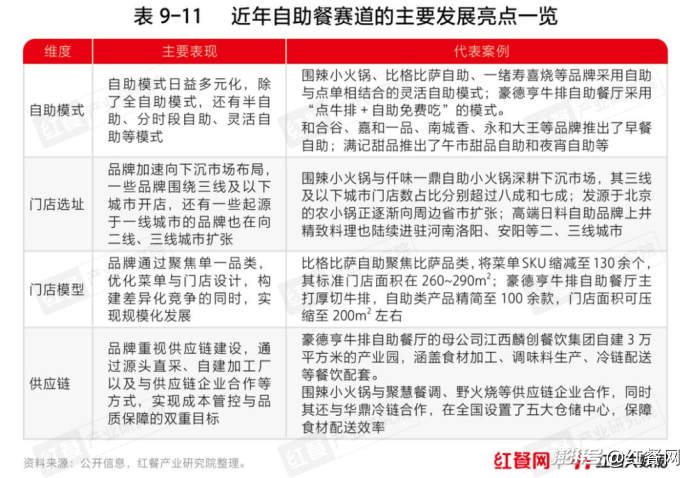 此外,諸如面包自助、面館自助、餃子自助、小龍蝦自助、麻辣燙自助、快餐自助、早茶自助等不同類型的自助餐廳也在不斷涌現(xiàn)。而一些非自助餐領(lǐng)域的品牌也引入了自助模式,以提升消費者體驗和拓寬消費場景,如慶豐包子鋪、滿記甜品、南城香、永和大王、必勝客等,粵菜品牌金鼎軒還在北京開出了首家自助餐廳。