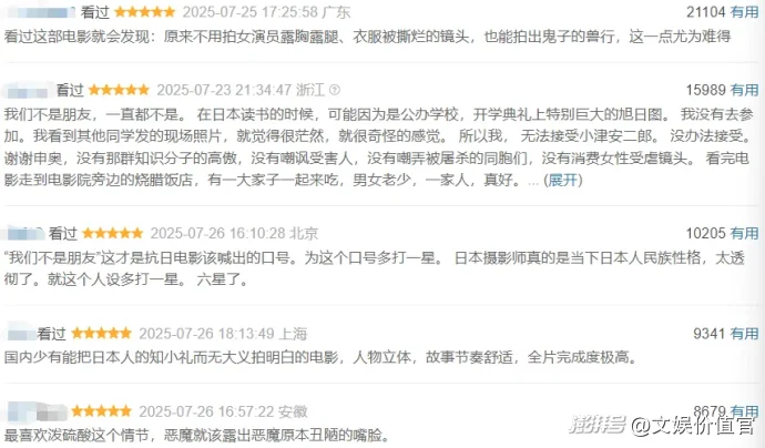 電影以小切入觀察大時(shí)代,講述一群生活在南京的百姓躲在吉祥照相館中避難,為了盡可能的多活一日,他們被迫幫助日軍攝影師沖洗底片,卻意外沖印出了能證明日軍屠城的罪證照片。他們?cè)局幌朐诖笸罋⒅斜C钕氯?,面?duì)日軍在南京城內(nèi)的暴行決定讓這些底片留存下去的故事。不少觀眾看完給出高分評(píng)價(jià),“看過(guò)這部電影就會(huì)發(fā)現(xiàn):原來(lái)不用拍女演員露胸露腿、衣服被撕爛的鏡頭,也能拍出鬼子的獸行,這一點(diǎn)尤為難得?!薄皣?guó)內(nèi)少有能把日本人的知小禮而無(wú)大義拍明白的電影,人物立體,故事節(jié)奏舒適,全片完成度極高?!?/p>