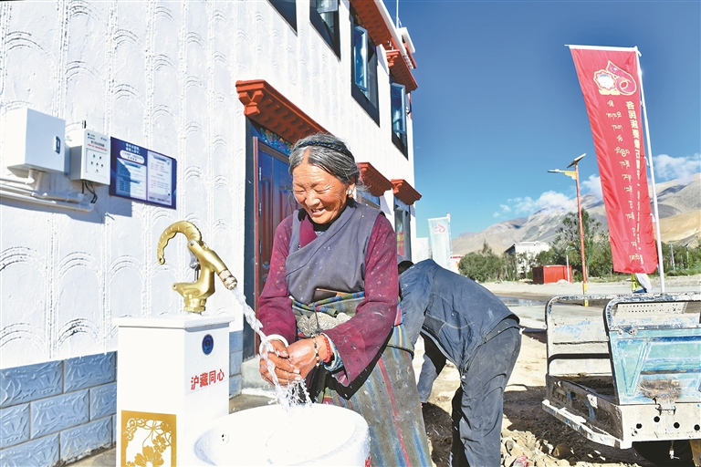 8月7日,拉姆一家分到一棟110平方米的新房。當(dāng)她擰開(kāi)锃亮的水龍頭,熱水涌出的瞬間,淚水奪眶而出:“以前兒子沒(méi)法在家里洗澡,現(xiàn)在能了,特別開(kāi)心?!边@簡(jiǎn)單的心聲,道出森嘎村600多名村民共同的喜悅。