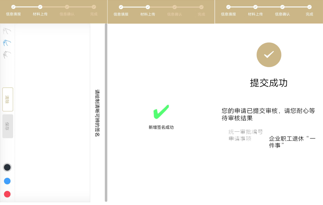 第六步——點(diǎn)擊“下一步”進(jìn)行電子簽章,電子簽章可暫存,下次進(jìn)入將會展示暫存簽名→進(jìn)入“信息確認(rèn)”頁面,核對申報信息后,點(diǎn)擊“確認(rèn)”,系統(tǒng)提示“提交成功”,完成業(yè)務(wù)申報。