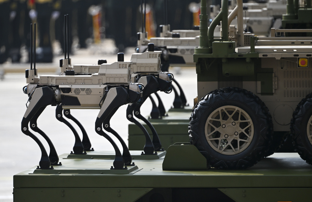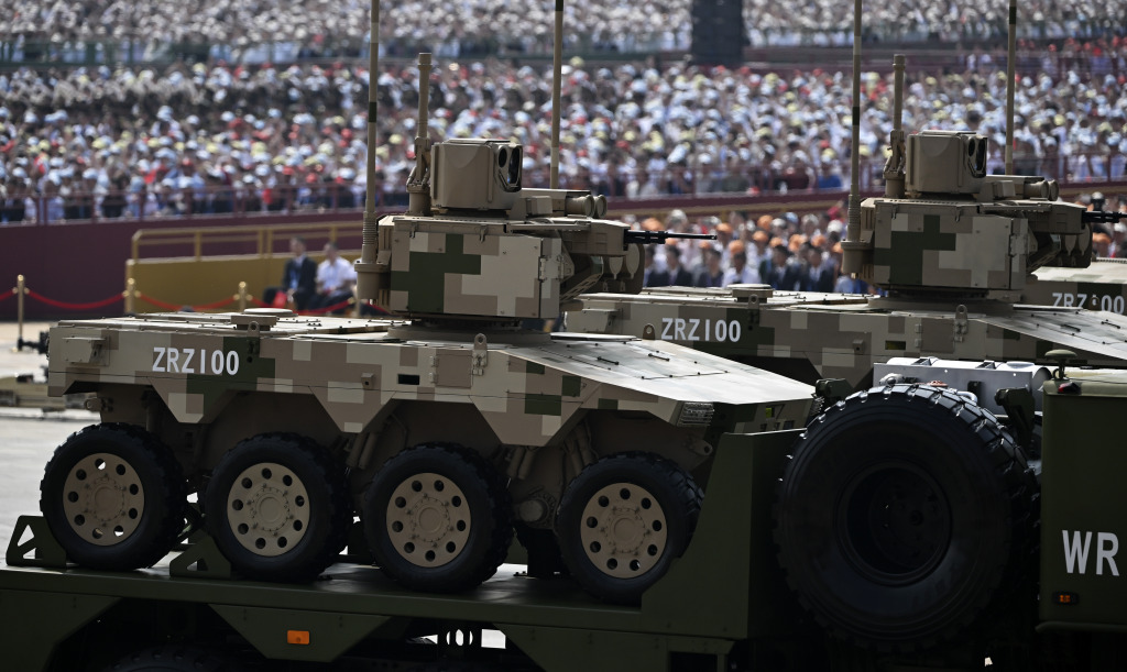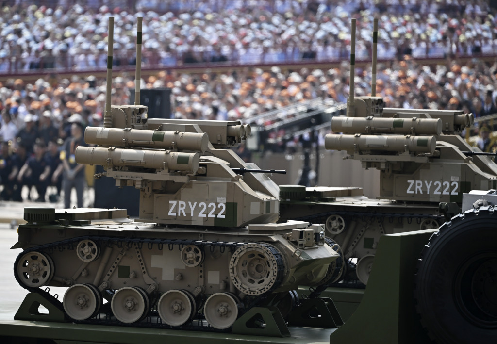 025年9月3日,紀(jì)念中國人民抗日戰(zhàn)爭暨世界反法西斯戰(zhàn)爭勝利80周年大會在北京隆重舉行。這是陸上無人作戰(zhàn)方隊(duì)接受檢閱。 新華社記者 張濤 攝