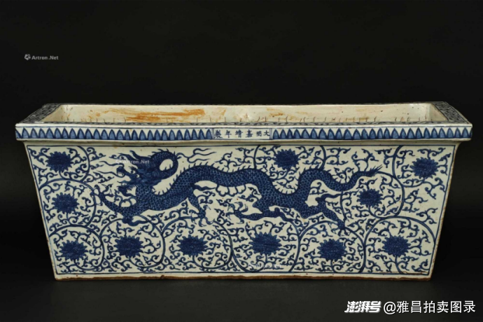明 青花龍紋斗缸長約86.2cm;寬約38.7cm;高約31.6cm估價: JPY 50萬2025-09-06 京都祇園會京都美術(shù)俱樂部會員專場