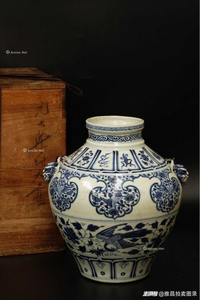 元代青花瓷的成熟得益于兩大關(guān)鍵因素:一是景德鎮(zhèn)窯采用 “二元配方”(瓷石 + 高嶺土),使胎體更致密堅硬,能支撐大型器物的燒制;二是進口鈷料 “蘇麻離青” 的使用,其高鐵低錳的特性呈現(xiàn)出濃艷藍中泛紫的色澤,且在釉下形成自然暈散的鐵銹斑。雙獅耳青花尊作為典型器,多為元代中后期(14 世紀中葉)景德鎮(zhèn)窯燒制,既服務于宮廷禮儀,也通過海上絲綢之路遠銷至伊斯蘭地區(qū)。
